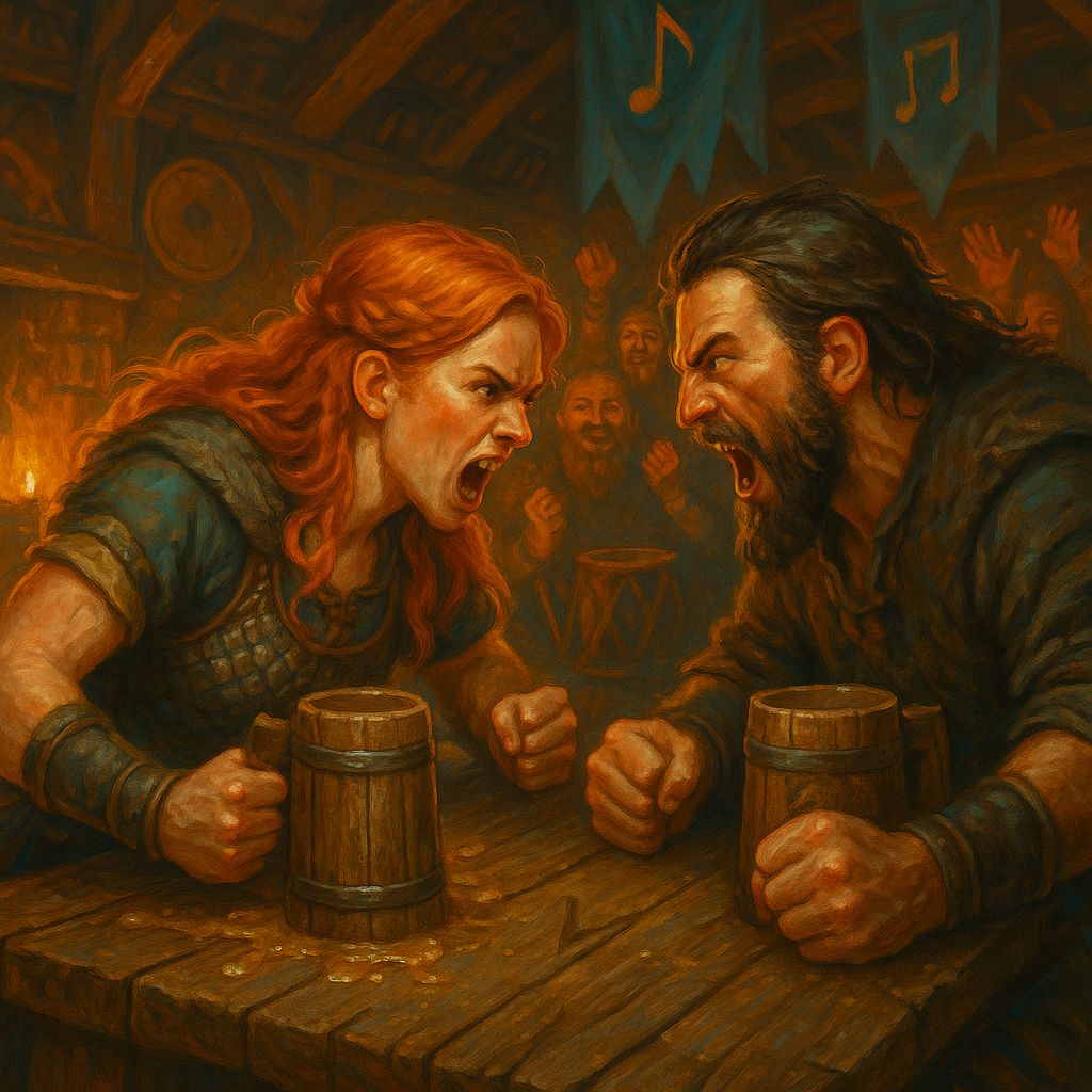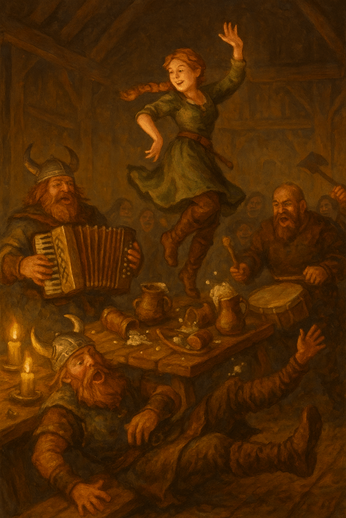This upbeat tune brings a hearty dose of chaos to the table — a roaring celebration of mead, music, and glorious disaster. Between spilled horns, broken benches, and off-key battle songs, the night becomes a legend in its own right. Beneath the laughter and clatter lies the true Viking spirit: joy found not in perfection, but in shared moments of wild, unforgettable camaraderie.