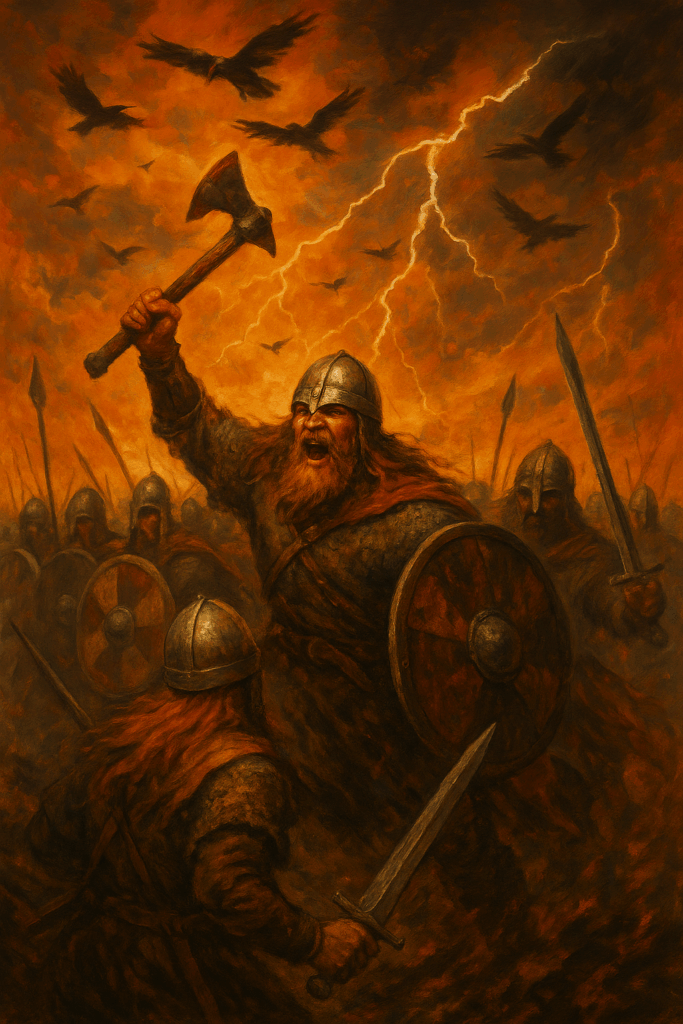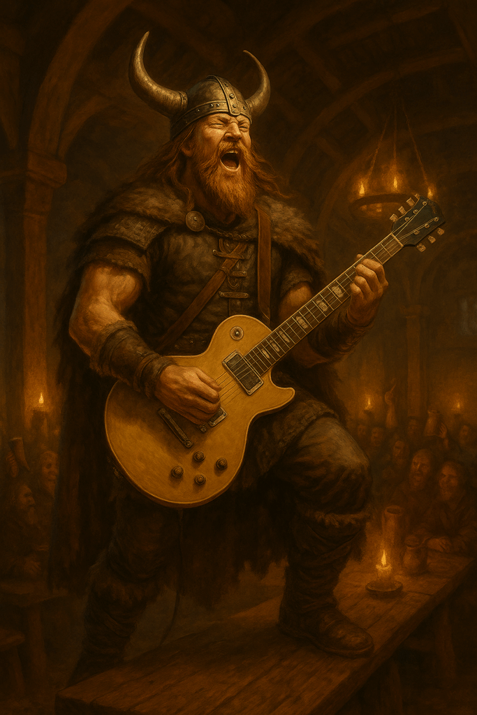 This track raises a tankard to the skalds — quick-witted poets who could flay egos with a couplet and bless warriors with a chorus. This track gallops with swagger and grin, lacing its verses with tongue-in-cheek nods to legendary metal band names (count the Easter eggs!). It’s a rowdy tribute to wordsmiths of the longhouse: loud, clever, and forged for sing-alongs at full volume.